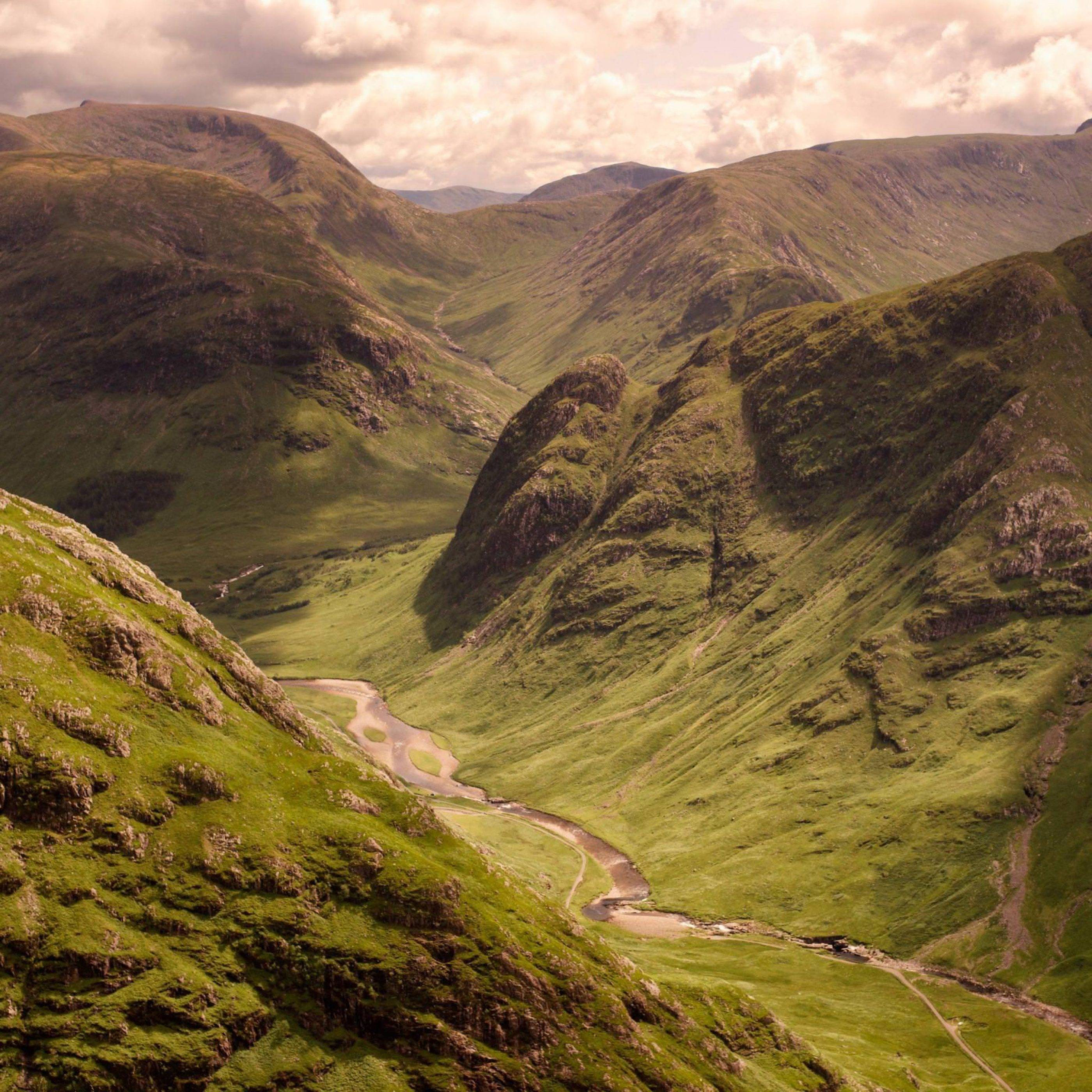 - Das verlorene Tal (Coire Gabhail), das vom Parkplatz in Glen Coe aus zu einem hohen, versteckten Tal hinaufführt. Siehe Details...
